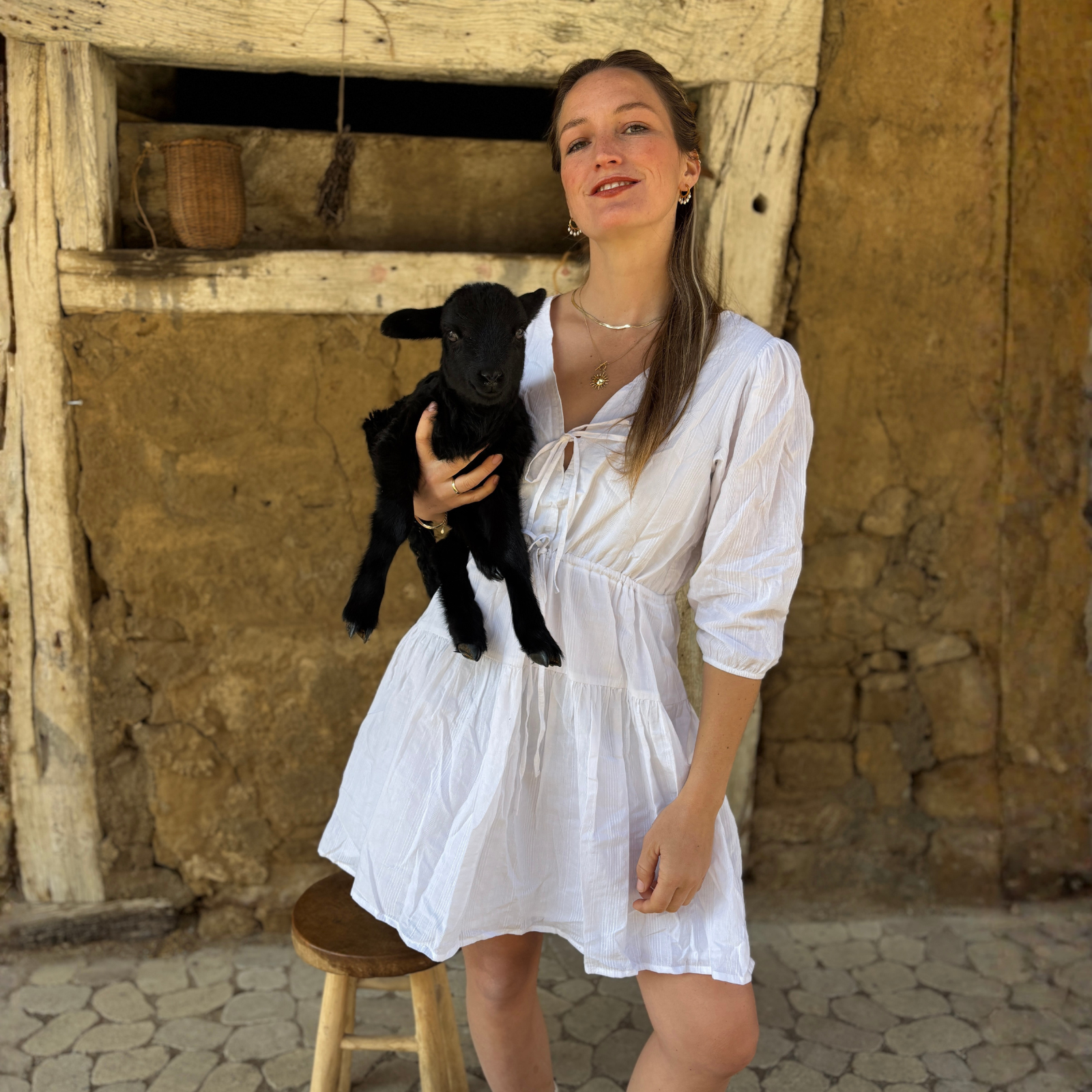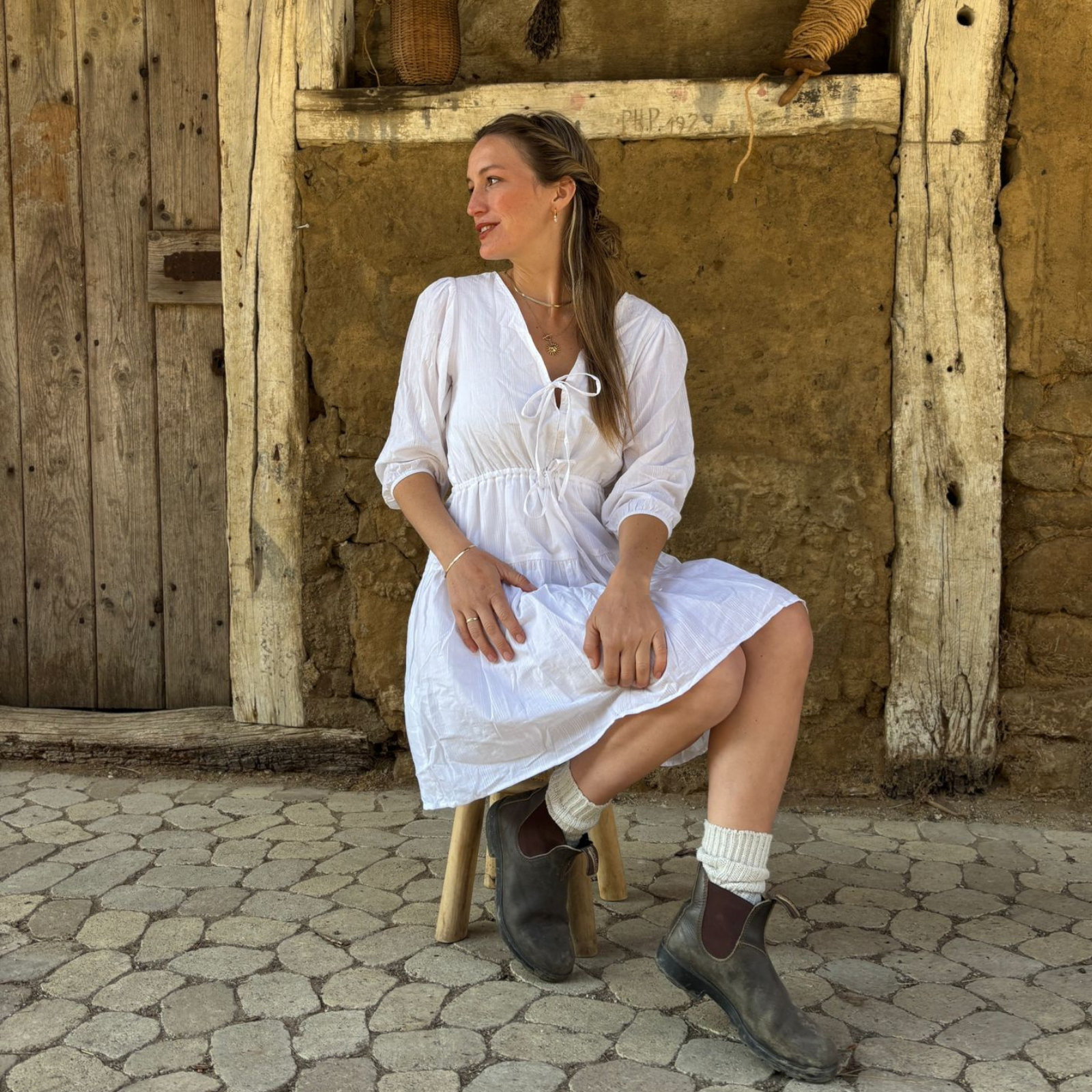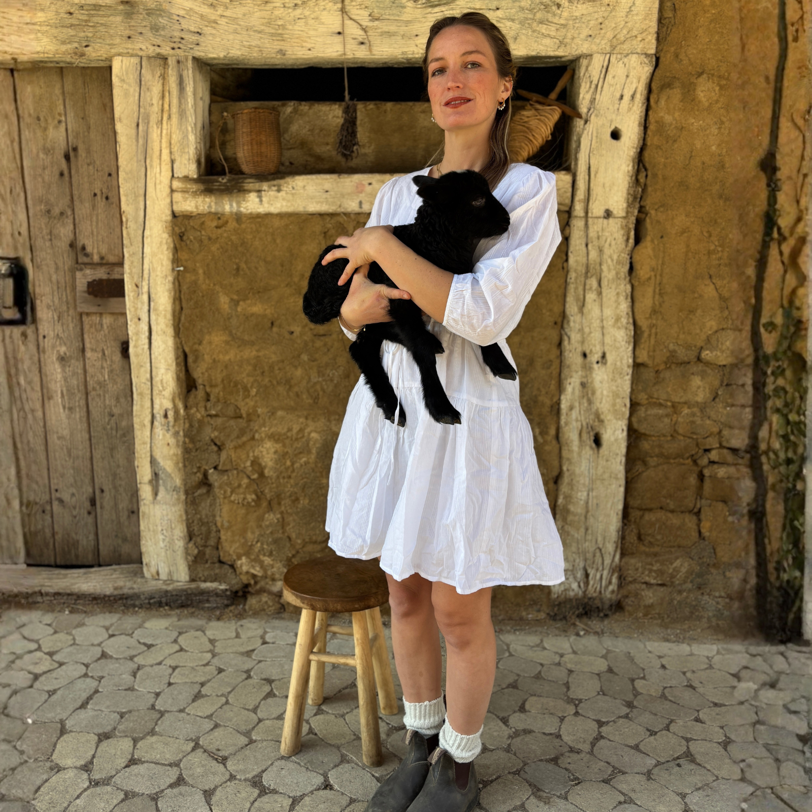 organic cotton fabricLIMITED EDITION The Northern Lights Jacquard Dress Kaja in white was created in collaboration with @geraldineschuele. Inspired by her life in the countryside, the tranquility of nature, and made for your everyday life.