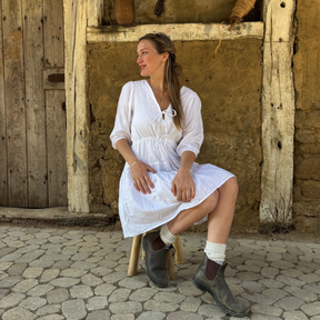 Fair & Social | The dress is handmade in Barcelos, Portugal under fair conditions and carries the GOTS CERES-1456 certification. This certification guarantees that the product was manufactured in compliance with strict ecological and social standards.